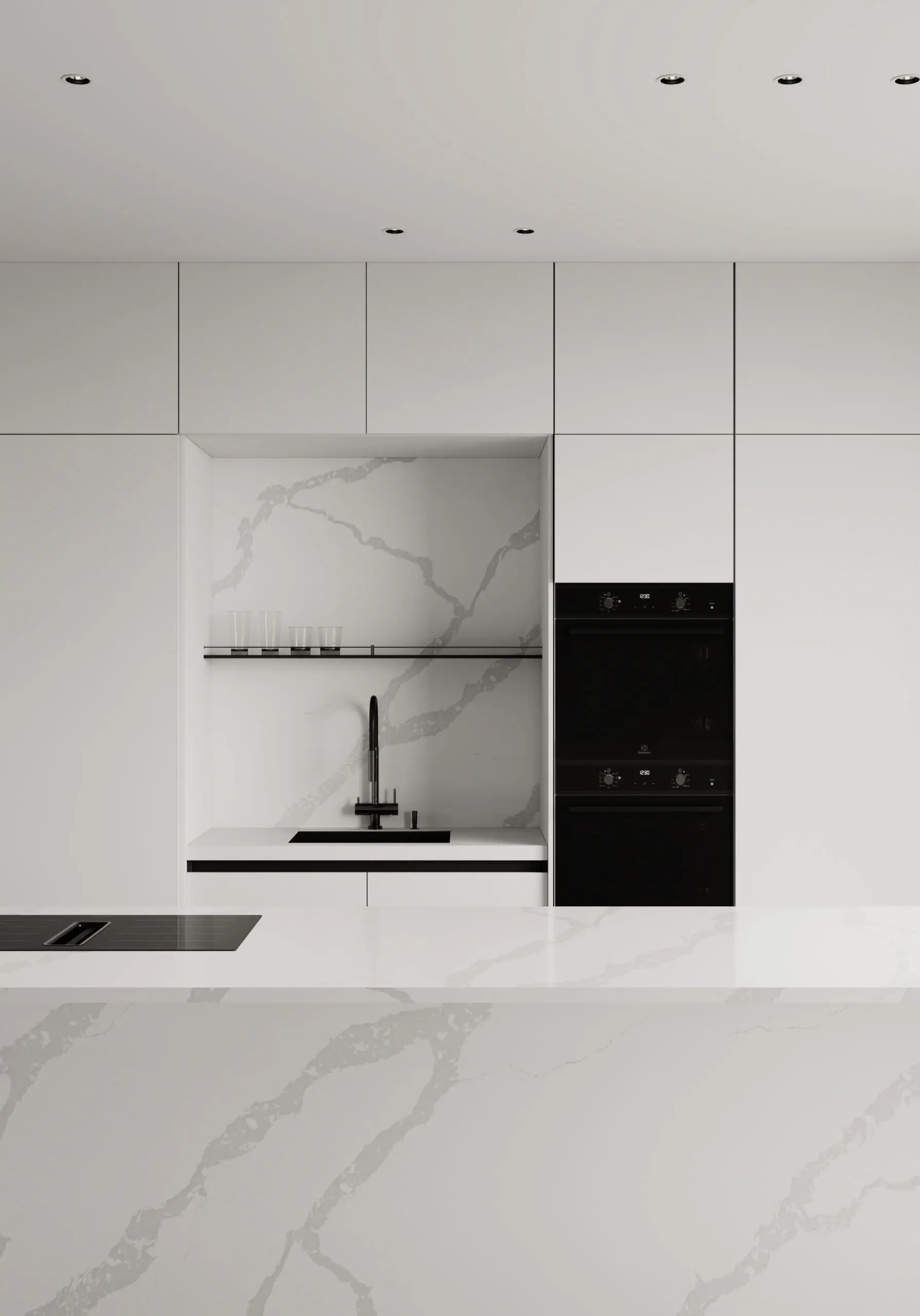 A timeless quartz pattern inspired by the beauty of calacatta marble, featuring elegant veining and subtle warmth for a luxurious touch to any space.