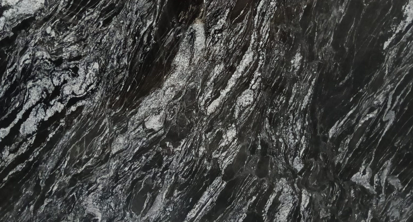The dramatic contrast between the dark base and light veining creates a sophisticated, high-end look with beautiful movement and depth — reminiscent of a misty forest at dawn.