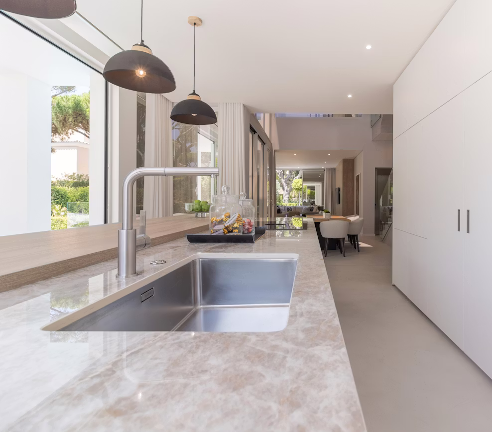 Inspired by the quartzite of the Taj Mahal, Dekton Stonika Arga the luxury of the natural stone with the properties of Stonika. Its smooth cream background, with subtle brown-gold veins, intensifies its dramatic structure. A hyperrealist graphic, with a dazzling sheen, gives depth and richness to this material.